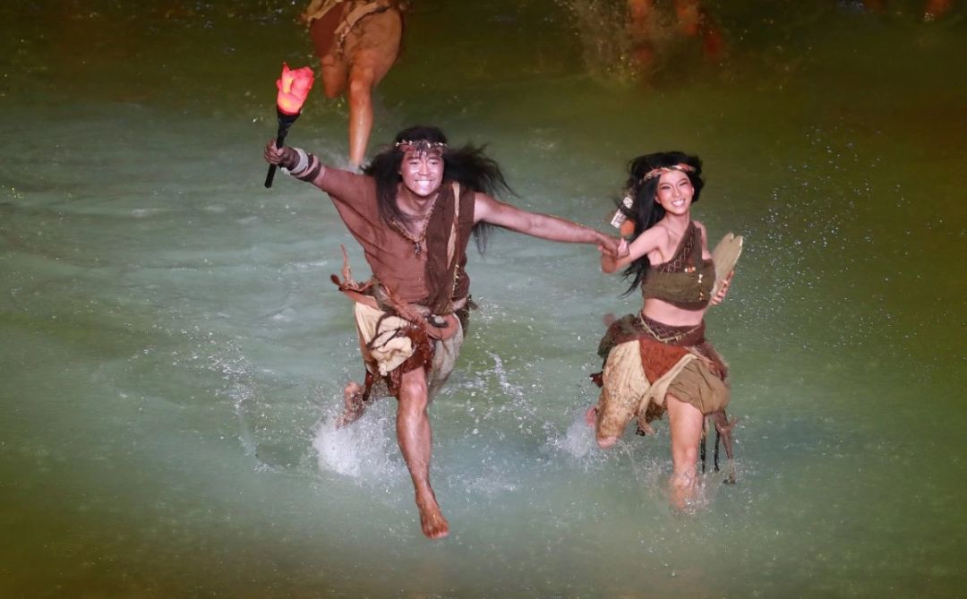 在军运会开幕式文艺表演中,水成为最令人惊叹的部分,它化身为长江、黄河以及中华大地上的大江大河,总是以令人意外的方式出现,又令人措手不及地消失,出现与速干都只在一瞬之间。在2万多平方米的舞台上,如此庞大的、及膝深的水是如何做到瞬息万变的?原来在舞台下方的空间中,藏有一个1米深的水槽,机器设备能够在极短时间内将水送到舞台上的指定区域,再结合影像,表现出各种景象。并且在这次表演中,长江、黄河等水域都采用了真水来表现。和陆地景物一道打造舞台效果。
