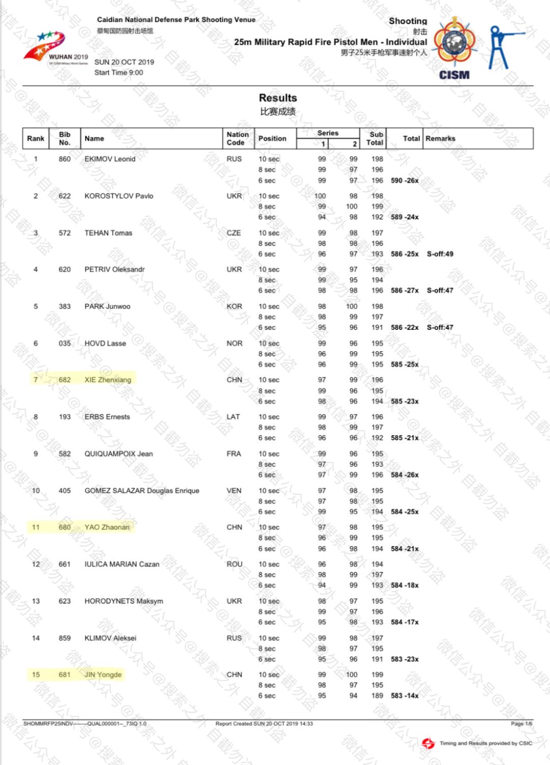 金泳德第15名(583-14x)高铮第17名(582-21x)完整成绩单请点击“阅读原文”