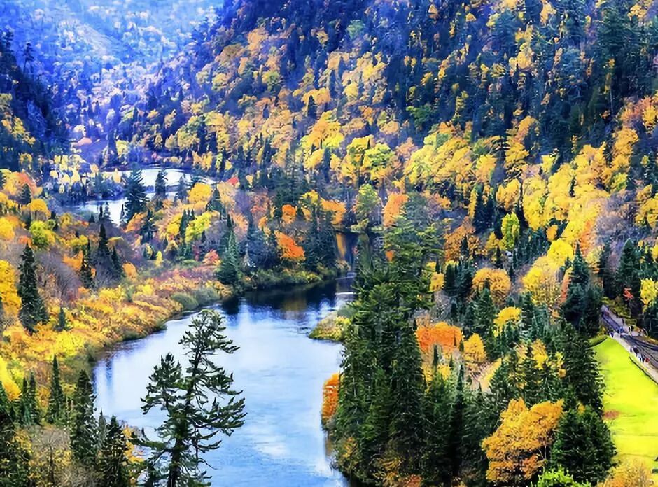晨曦微露上秋山,秋叶蜂拥入眼帘。
