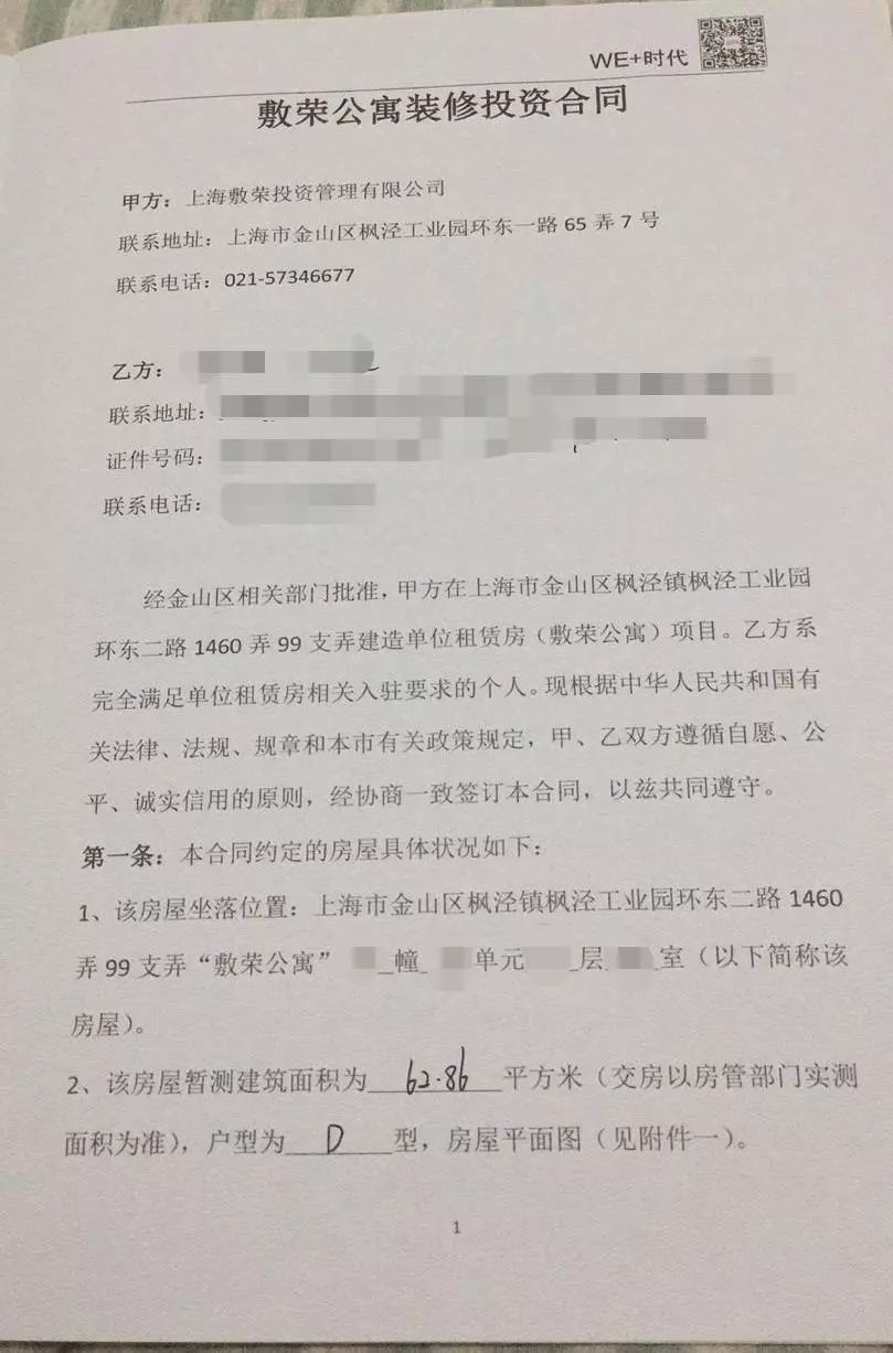 买房合同被开发商称为《敷荣公寓装修投资合同》