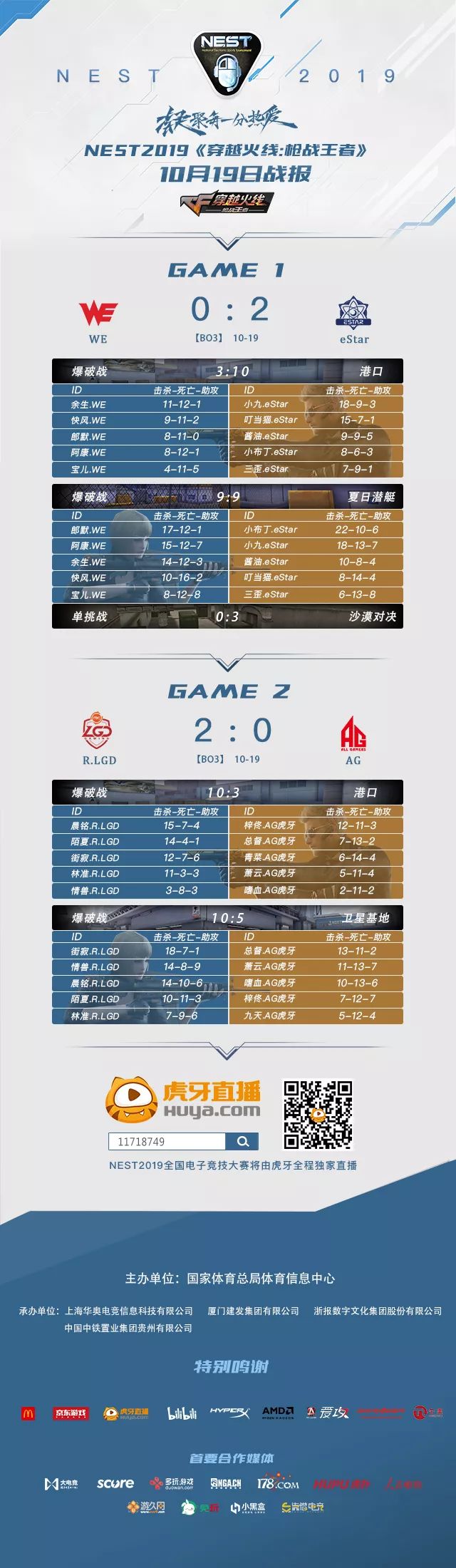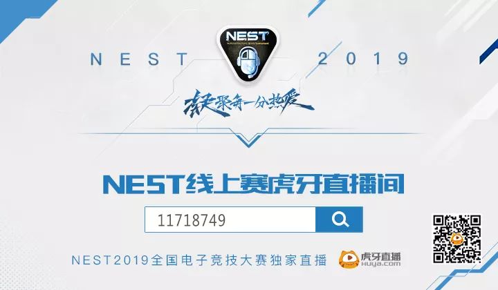 2019年,NEST继续携手虎牙直播,作为国内第一个上市的游戏直播平台,不仅拥有大量垂直电竞用户,雄厚的主播资源,同时拥有国内最尖端的视频直播技术,虎牙直播已然成为用户观赏电竞赛事的最佳首选。NEST全国电子竞技大赛作为目前国内顶级的第三方赛事,在未来三年内与虎牙直播达成独家战略合作,为广大电竞爱好者呈现更多精彩纷呈的电竞赛事内容。同时,大家可以通过虎牙直播多种多样的互动方式,参与到比赛中来进行互动交流获得海量的精美礼品。