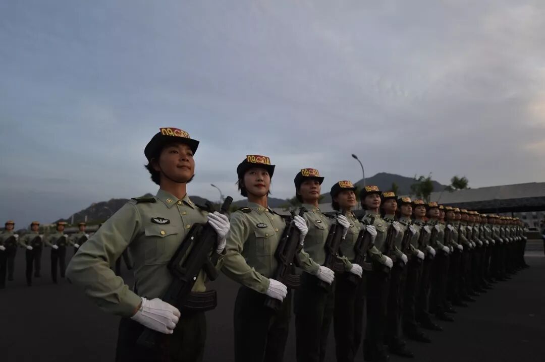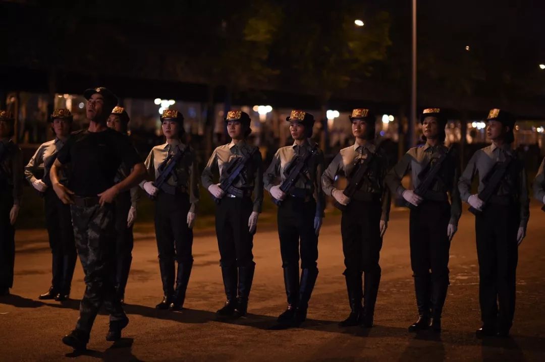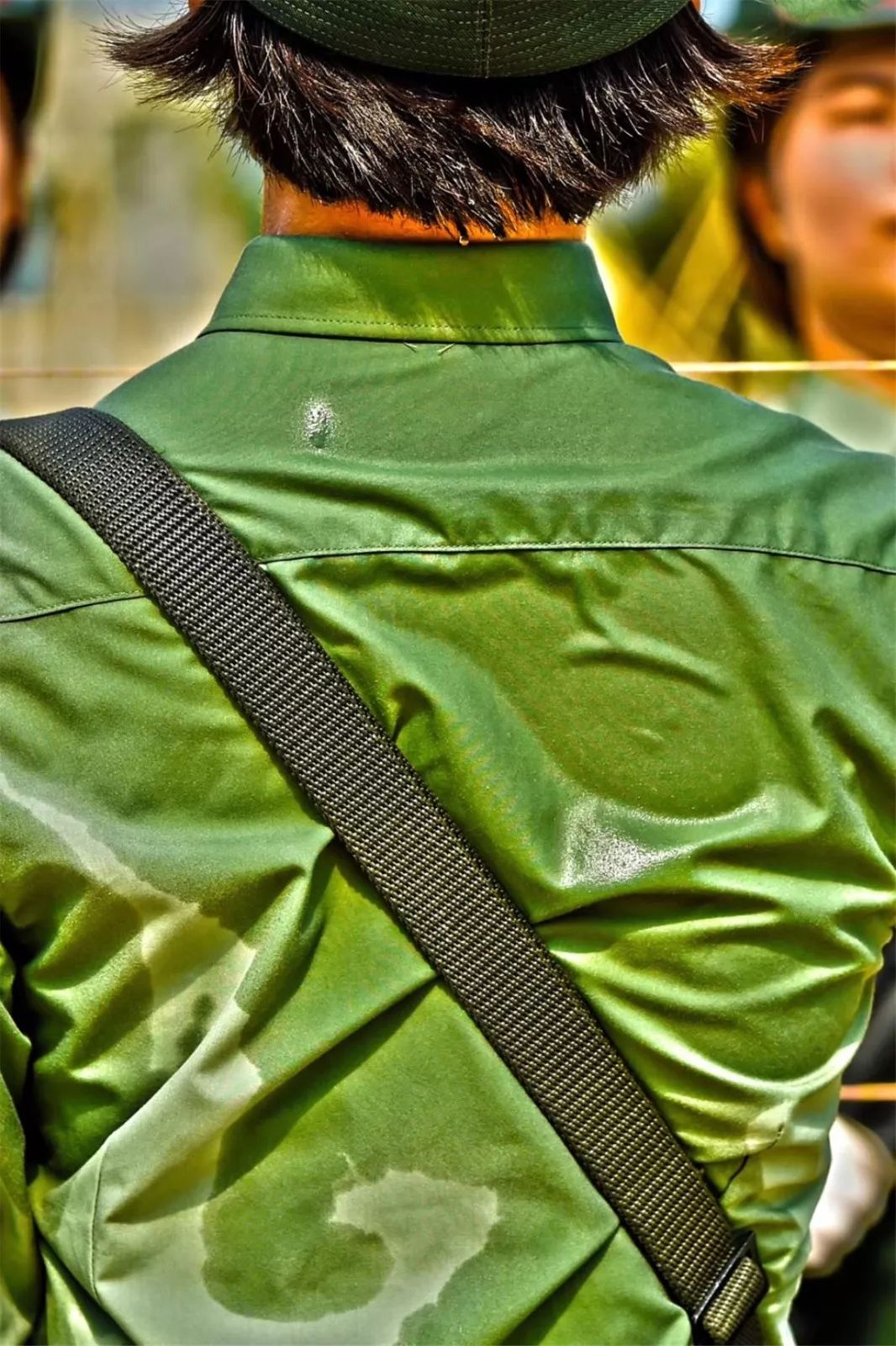 军姿是每名队员必须过的第一道关。平常训练军姿,最多也就一两个小时。大阅兵需要“站如松树般挺拔”的硬功夫,莫小妮和战友们经常在近40℃的高温中,手握钢枪,昂首挺胸站立几个小时,眼睛一动不动地盯着前方。汗水顺着脸庞如雨珠般滚落,湿透了衣服。军姿训练对于这群姑娘来说,还仅仅是一道开胃小菜。