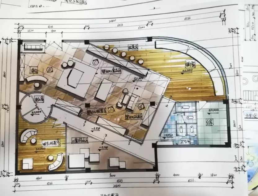 ▲来自主案设计师的平面布局手绘稿