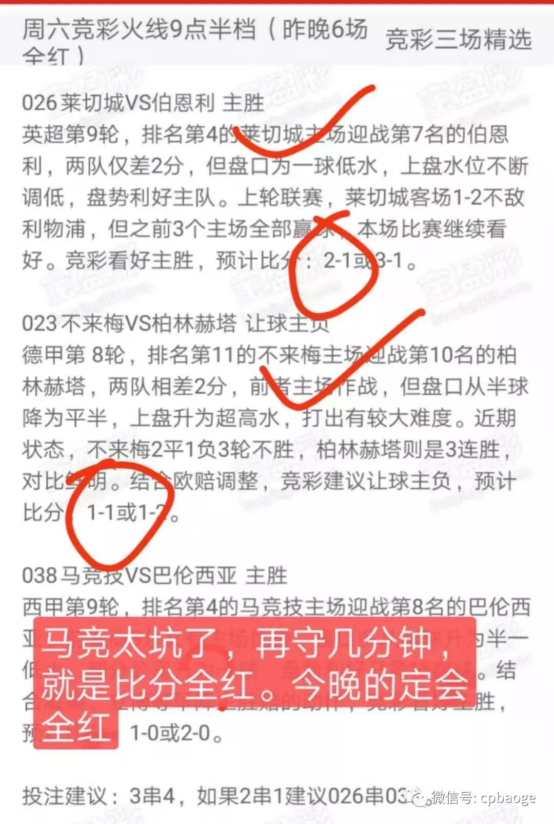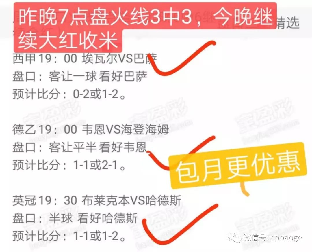昨晚7点盘火线又是3场全中,其他多3中2收米。