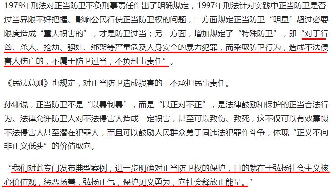 并明确提出了:“法律允许防卫人对无法侵害人造成一定损害!”