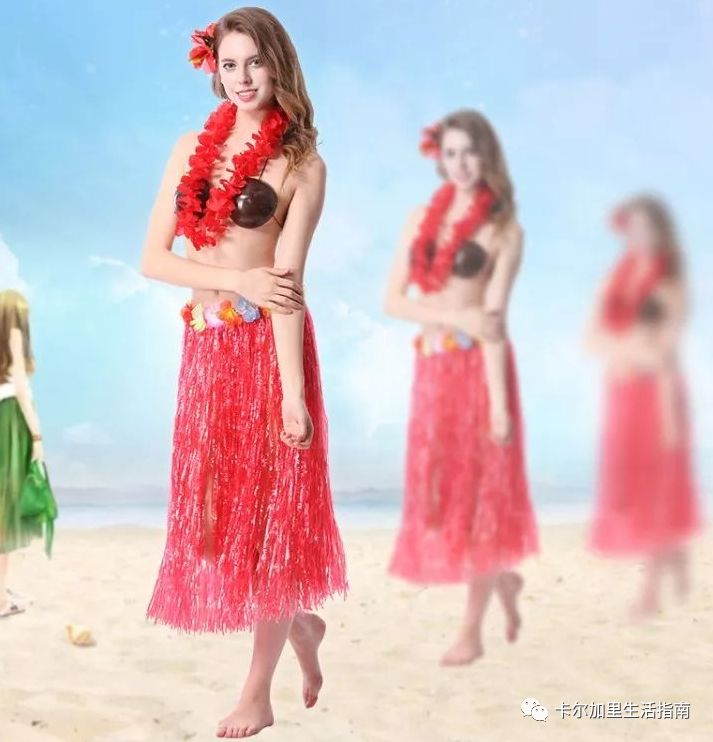 因为是夏威夷主题,她当天就穿着一套比基尼和一条草裙去了。