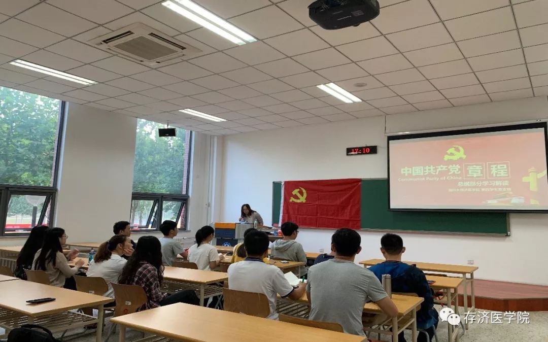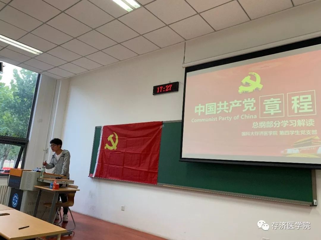 2019年9月28日晚17:00至17:40,存济医学院2019级1805班党支部举办了“中国共产党总纲部分学习解读”活动。这次活动旨在让支部党员了解党章的思想,并将其落实到今后的学习生活中。活动主题由“总纲解读”“互动学习”“任务布置”组成。