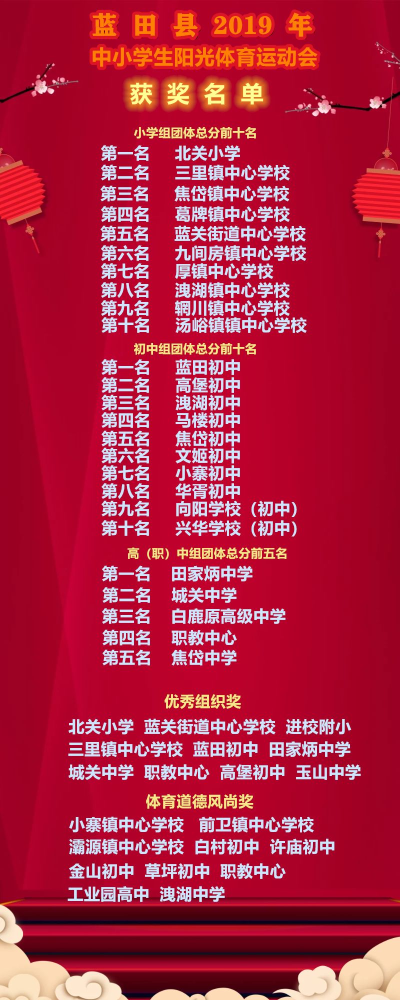 蓝田县2019年中小学生阳光体育运动会完美收官