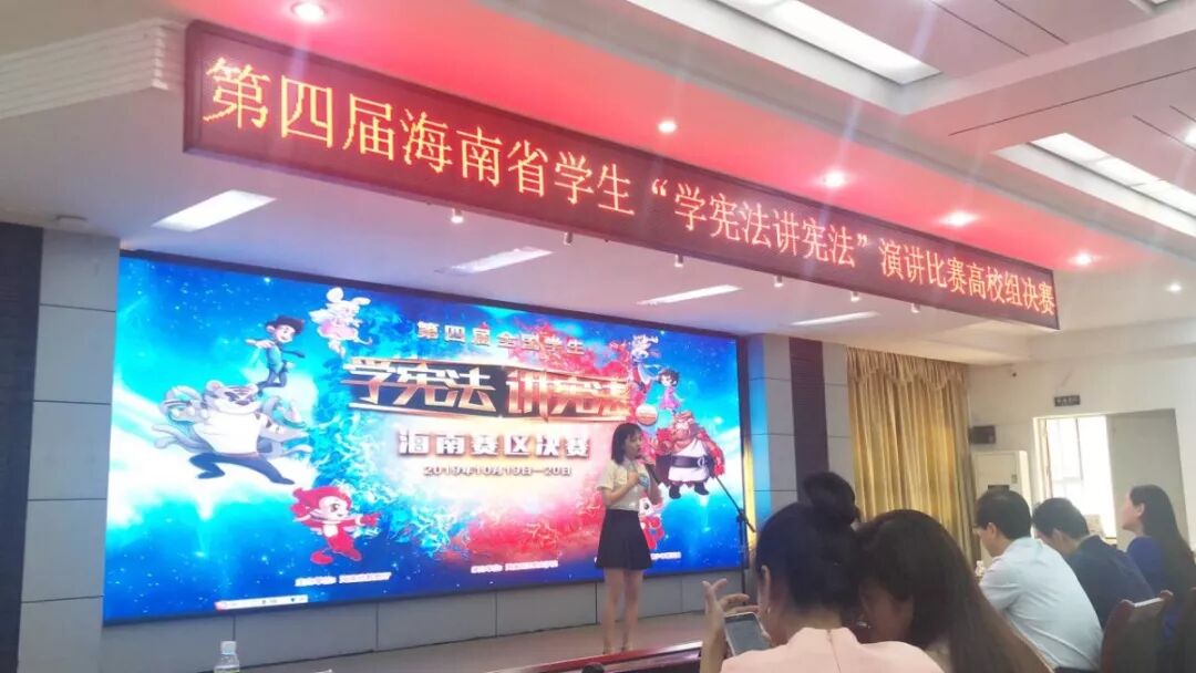 演讲比赛分为主题演讲和命题演讲2个环节。第一环节,来自海南省各大高校20名选手围绕经弘扬宪法精神、树立法治信仰开展主题演讲,最终有10名选手进入命题演讲决赛环节。
