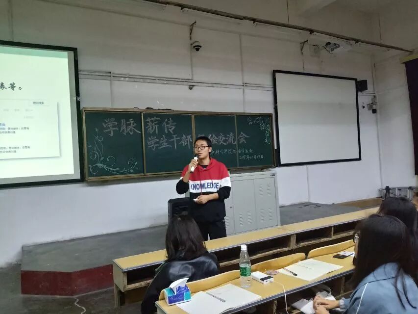 10月19日晚,我院在五号教学楼05103教室召开“学脉薪传”学生干部经验交流会。参加交流会的有第三十四届团委学生会全体成员及大一各班班长、团支书,共计200余人。本次会议由文艺部孟源主持。