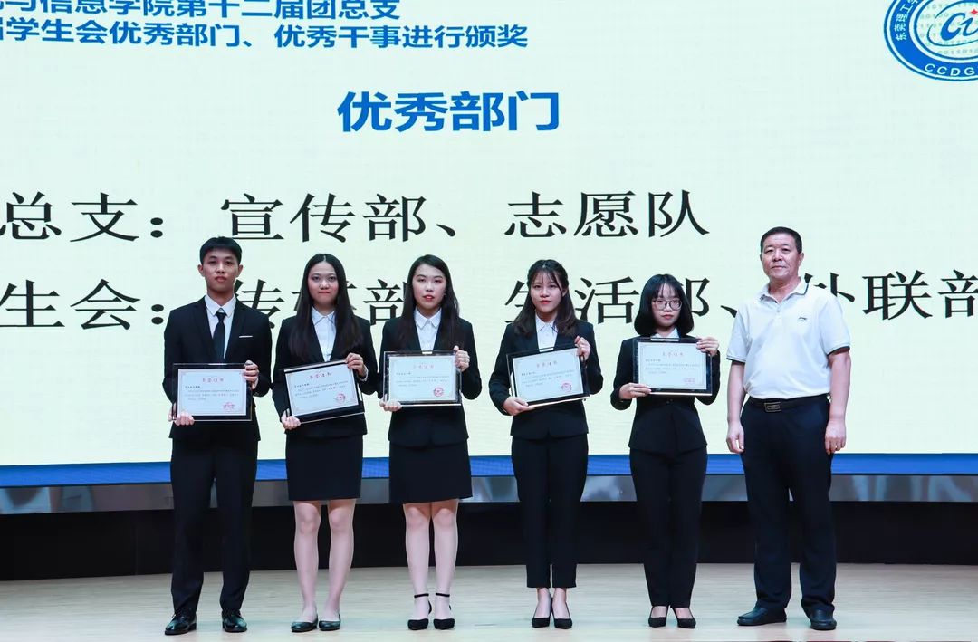 由计算机与信息学院党总支书记廉玉忠为荣获团总支学生会“优秀部门”荣誉的部门颁奖。