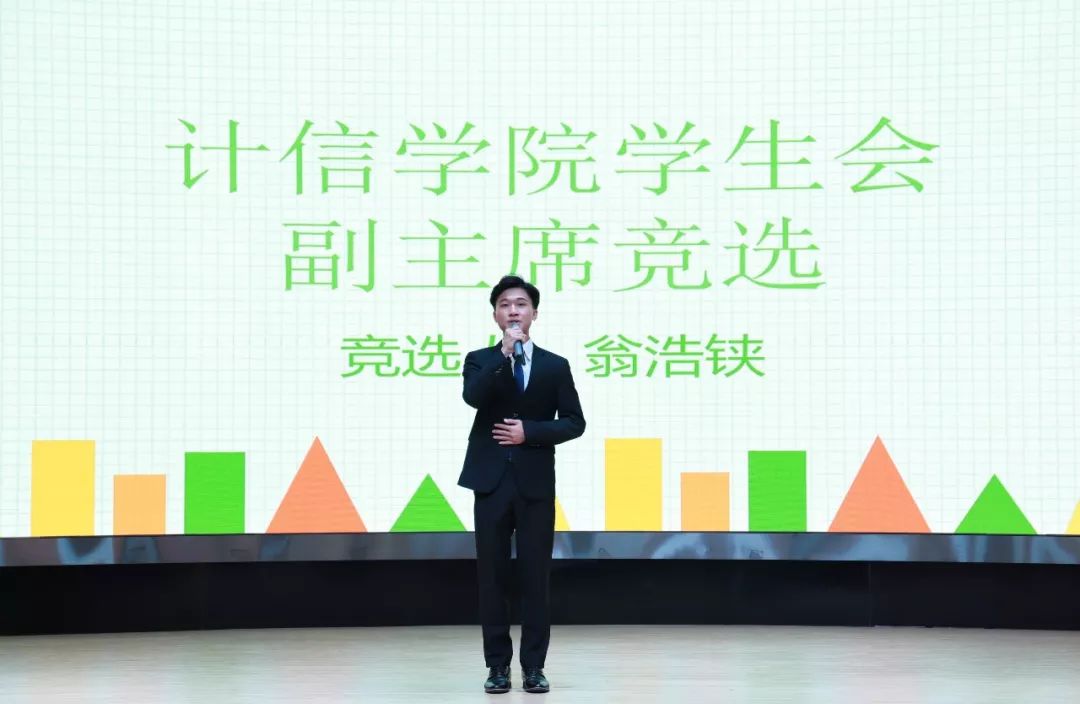 最后进行的是计信学院第十三届团总支委员、第十六届学生会主席团选举。在各位竞选委员的竞选演讲和提问作答下,在场学生代表依据竞选者的演讲和回答进行投票。