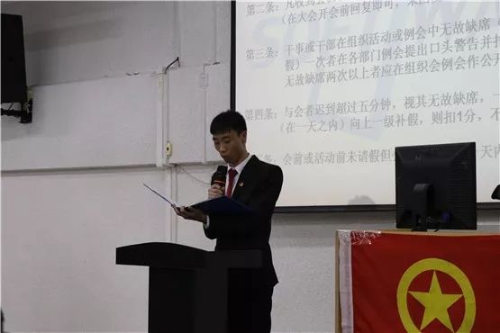 分团委学生副书记李馥锋师兄宣读“软件工程系干部考勤制度”