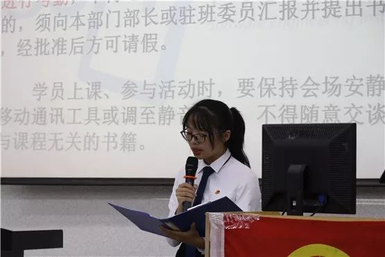 随后,分团委学生副书记李馥锋师兄宣读“软件工程系干部考勤制度”与“软件工程系干部行为准则”文件。分团委办公室主任黄雪丽介绍本次培训班课程安排与注意事项。希望干部们都能够牢记软件系学生干部考勤制度与行为准则,了解本次分团校培训的注意事项,在分团校培训中充实自己。