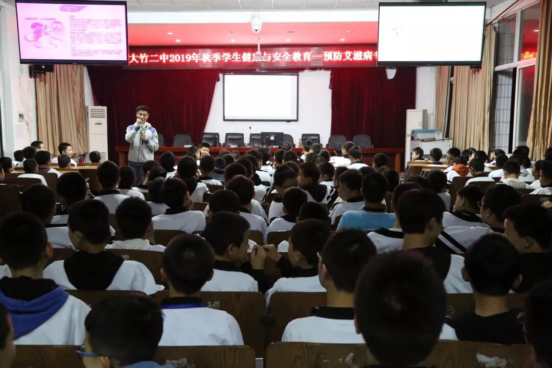 近日,为加强对青春期学生的心理和生理安全教育,普及卫生健康知识,培养学生良好的行为习惯,进一步提高学生的自我保护和防范意识,促进学生的身心健康发展,引导学生健康、从容渡过青春期,我校研支团四川分队成员在大竹二中开展了“学生健康与安全教育——预防艾滋病”专题讲座。由黄启萌老师担任主讲,千余名师生参加了讲座。