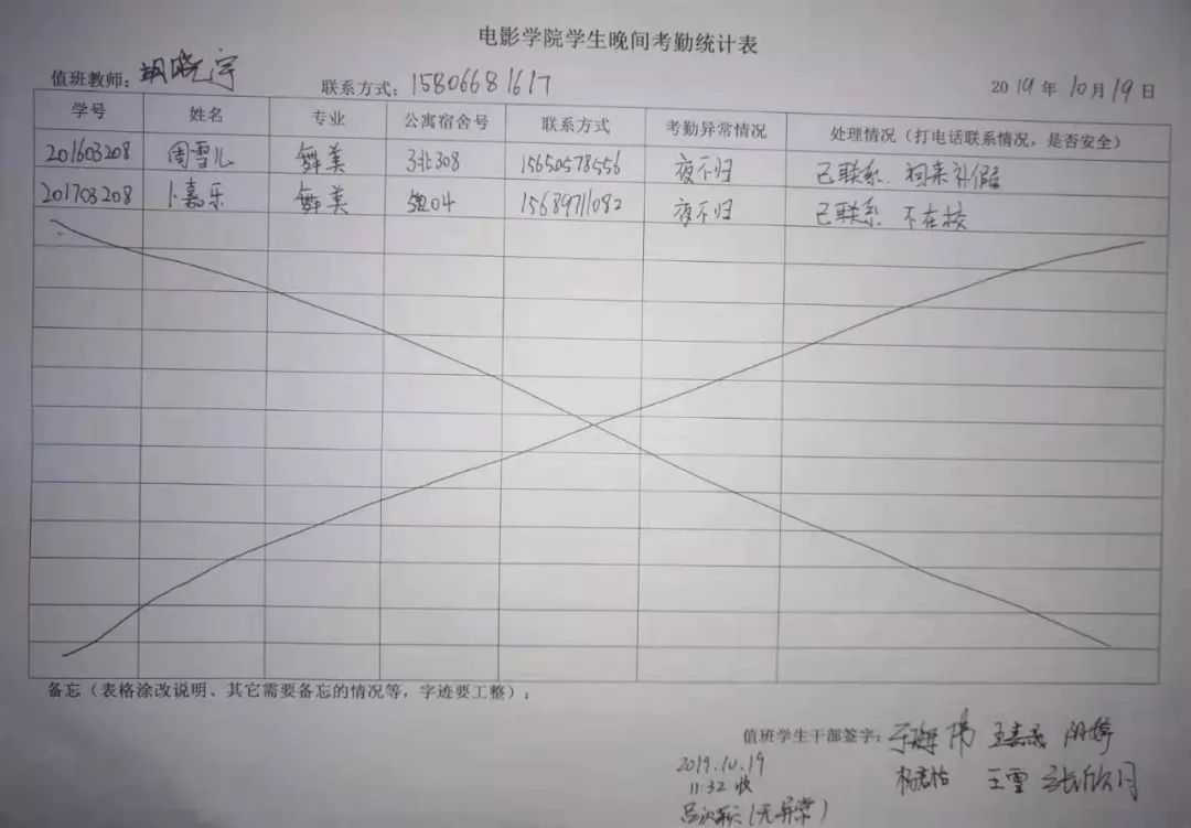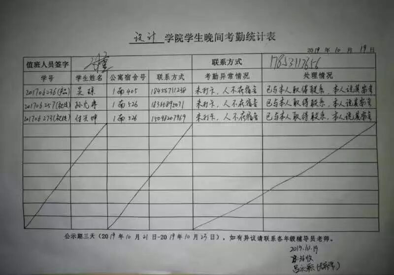 被记录夜不归的同学,如有疑问需消去夜不归记录,请及时联系所在二级学院的相关老师。