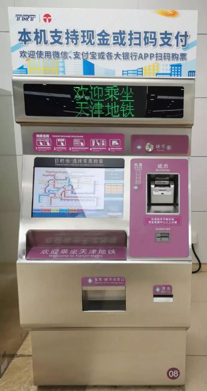 天津地铁自动售票机扫码购票上线