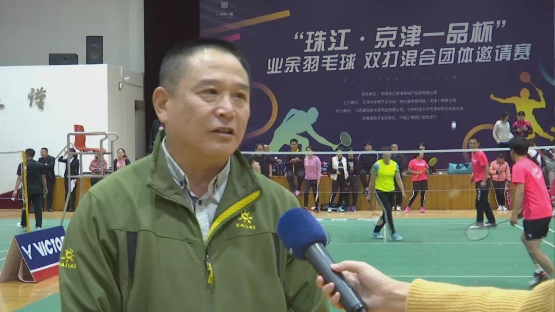 天津市体育产业协会副会长、秘书长 李东明:羽毛球是一个非常好的项目,它可以增加全身运动,同时也可以扩大肺活量,这样就可以提高市民基本身体素质,身体健康也就提高了一大块儿。