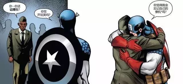 但美国队长却一眼认出了当年鼓舞自己的“老前辈”,两人紧紧的抱在了一起,在一家小酒馆聊了很晚。