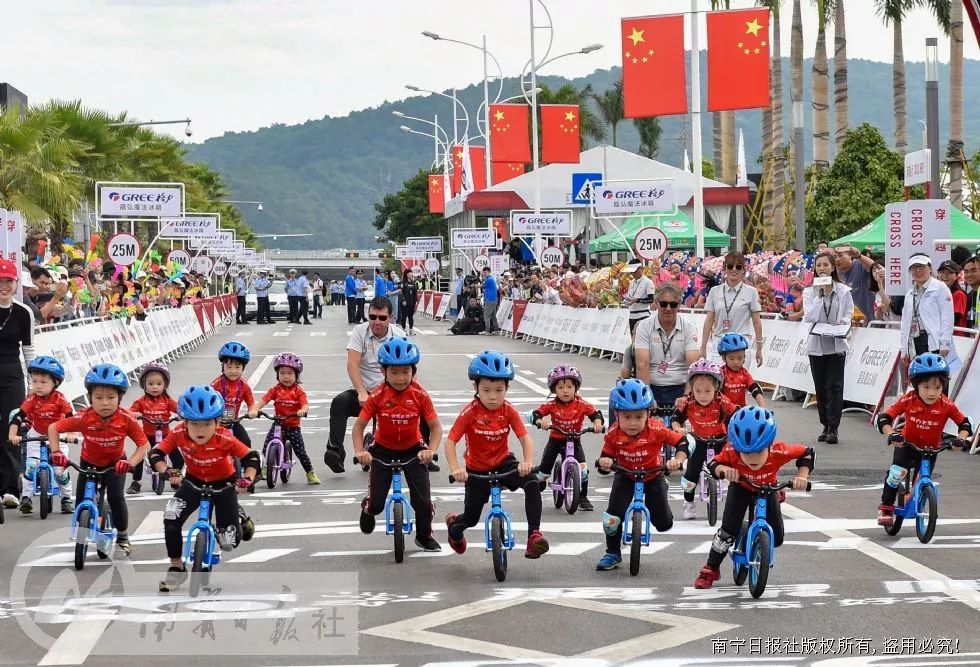▲2019“环广西”南宁绕圈赛现场,萌宝骑行欢乐上演 (潘浩 摄)