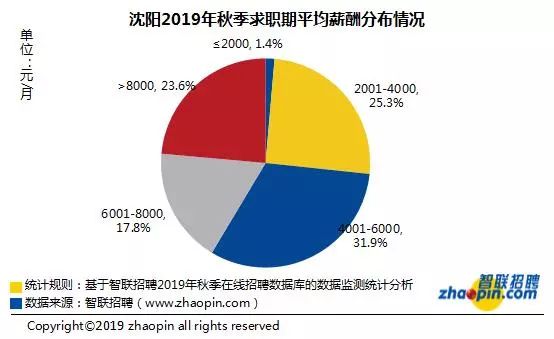 智联招聘在线数据显示,沈阳地区2019年秋季求职期的平均薪酬为6811元/月,在全国38个主要城市的薪酬水平中排名最末位,薪酬水平较上一季度略有上升,排名没有变化。从薪酬的分布情况来看,沈阳地区薪酬水平较低,平均月薪4001元/月至6000元/月的职位占职位总量的31.9%,8000元以上/月的仅占23.6%,占比较上一季度略有上升。