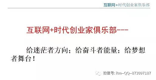 互联网+时代创业家俱乐部为互联网+时代的创业者搭建最高品质的交流平台,停不下的是我们与时代共舞的脚步,不变的是我们所有追梦人的一颗初心!