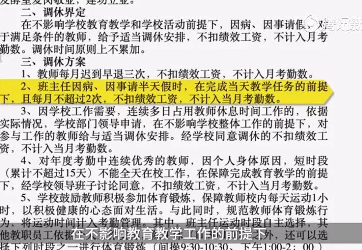 校长表示老师在不影响教育教学的前提下每月请假不超过2次每次半天不扣绩效工资