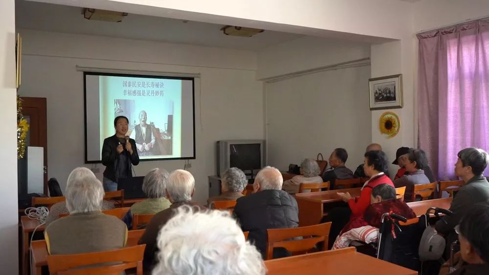 10月19日上午,展览策划人、大连晚报记者王春燕来到展览现场,为老人们作了《人活百岁不是梦》的专题宣讲,从基因、养生、保健、饮食、精神追求等几个方面,把历经5年采访大连百岁老人总结的长寿特点与老人们进行了分享。