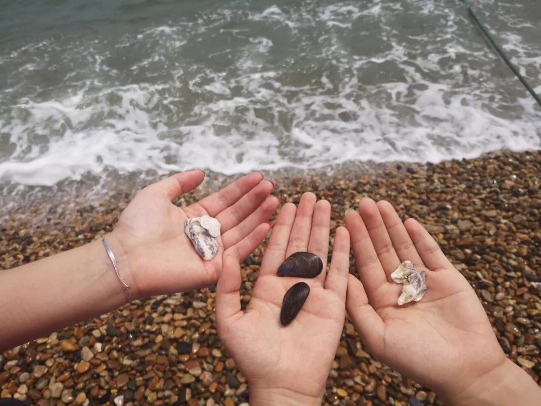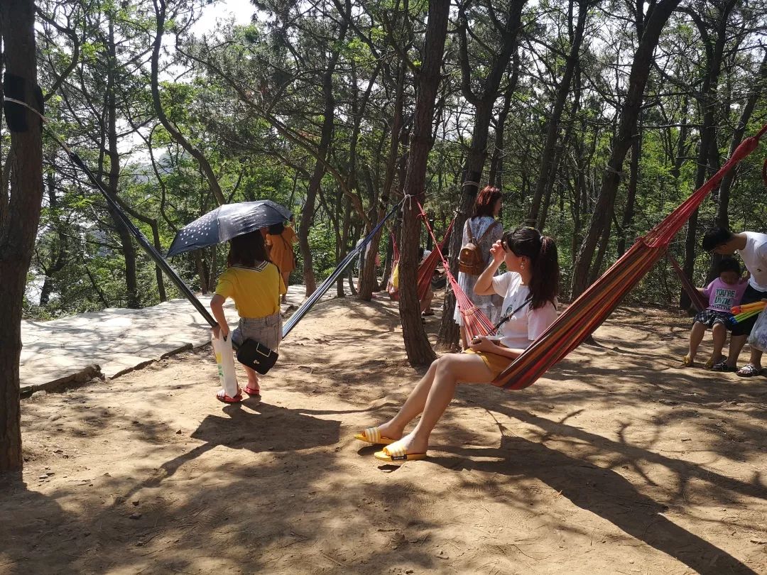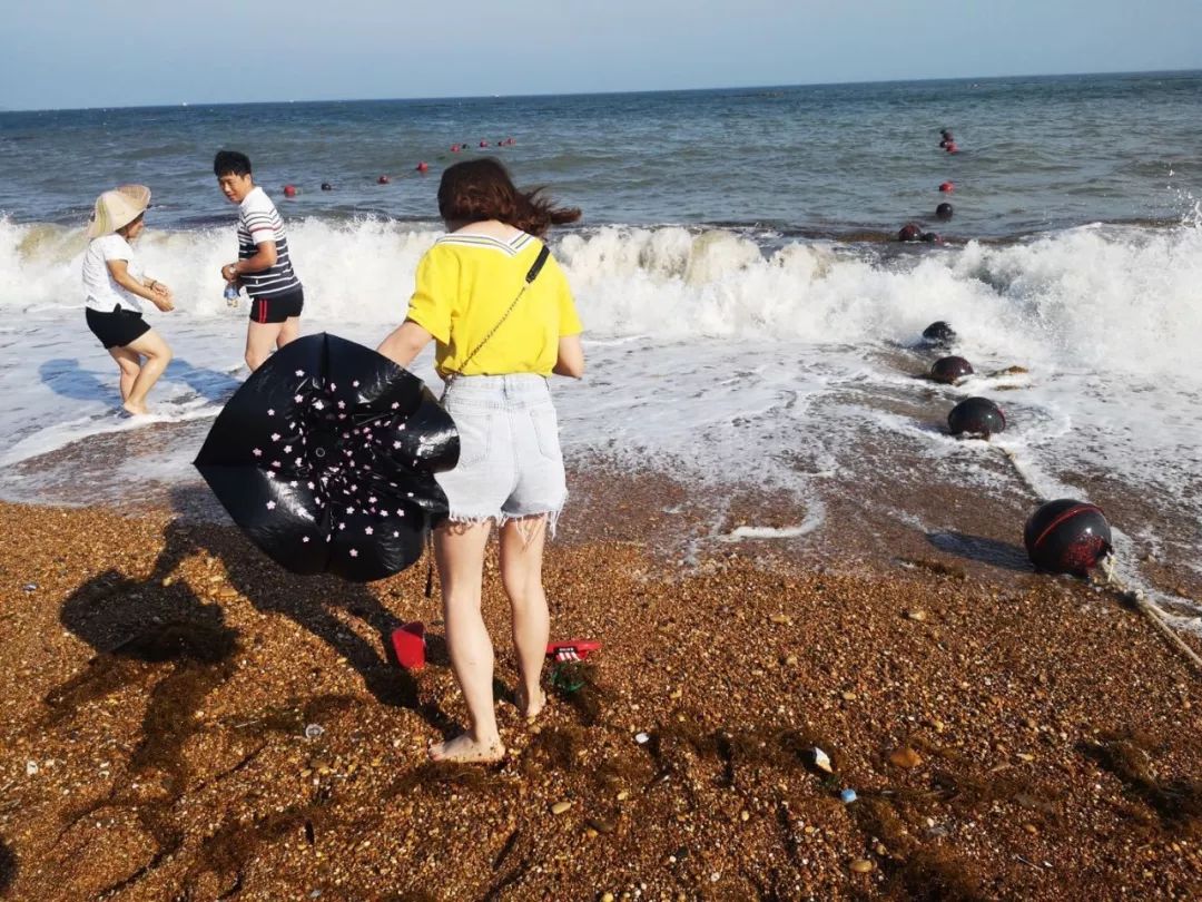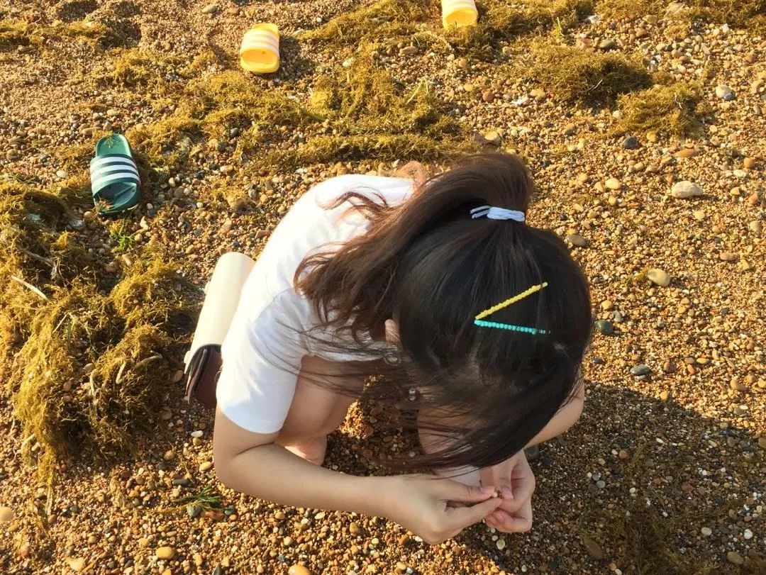 从左至右依次是,顽强与海浪抗争的小易儿,默默捡贝壳的敏敏,风中凌乱的瑶瑶,吊床瘫坐的两人,骚气比耶的背影易~
