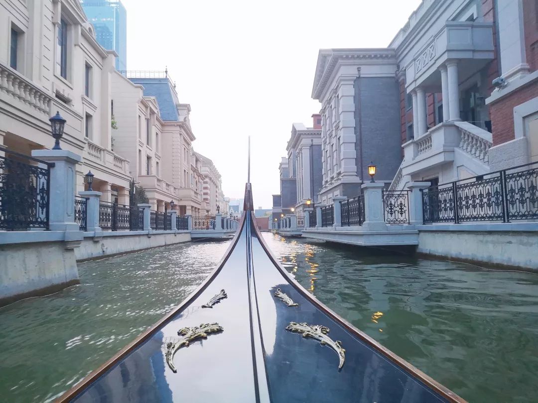 晚上小分队逛了海昌东方水城(有东方威尼斯之称),坐了贡多拉(就是图上这艘船)。夜景很美,看海很开心~