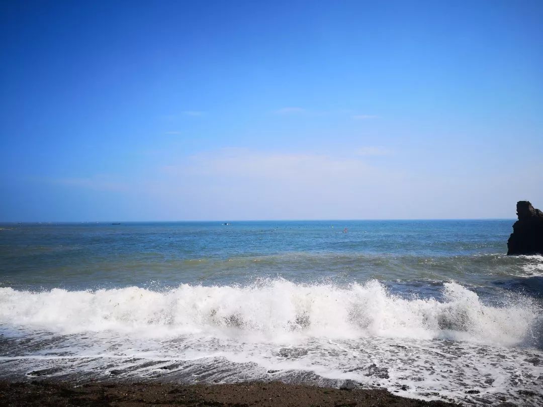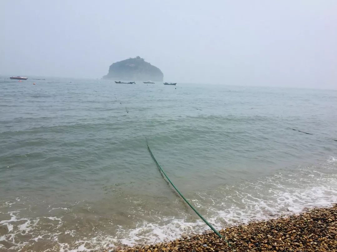 波涛滚滚,我们走在横跨大山间的小桥上,浪涛都能打到我们的拖鞋上。最后去黄金海岸,那石子,是真酸(硌)爽(脚)!