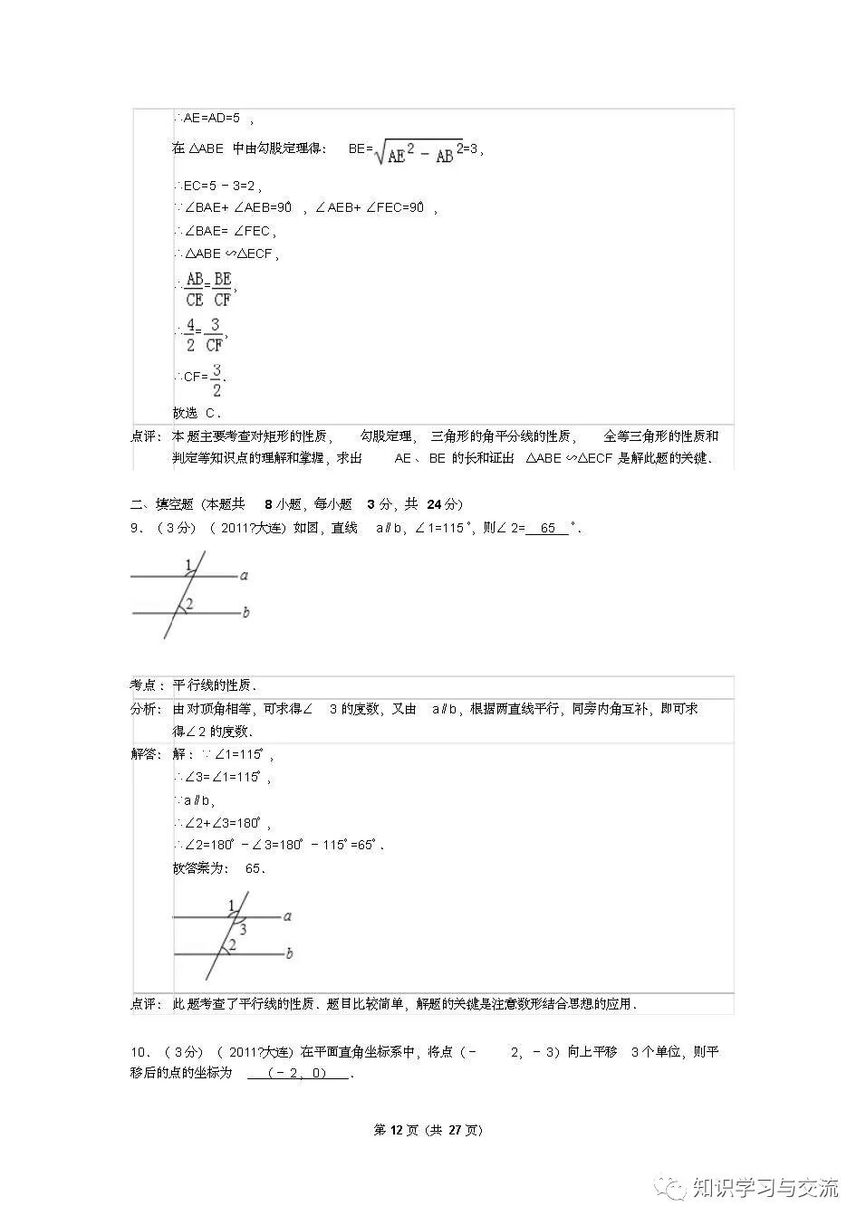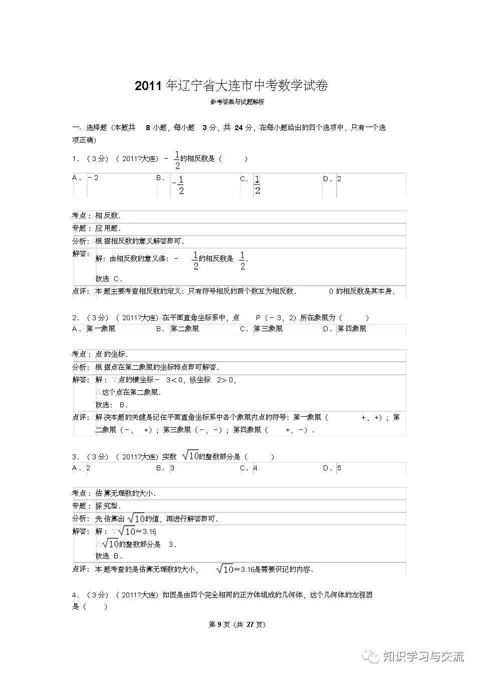 2011年大连市初中毕业升学统一考试数学 (中考数学,含参考答案与评分标准)