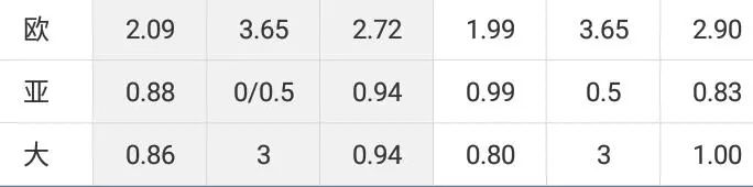 初盘:主让0.25(搞不懂),大小3球