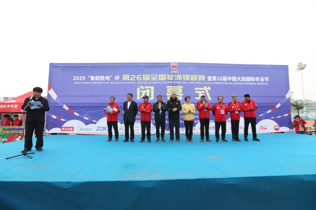 国家体育总局游泳运动管理中心冬泳委员会秘书长张梅 、国家体育总局游泳运动管理中心冬泳委员会安全检查官王燕、第26届全国冬泳锦标赛仲裁官林森林等领导、嘉宾出席闭幕仪式。