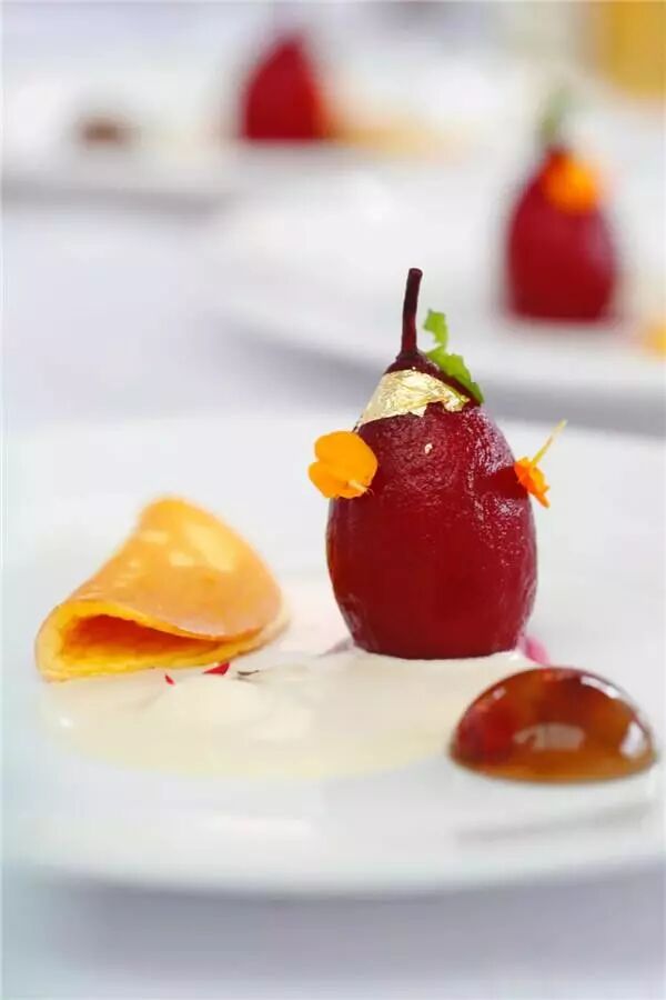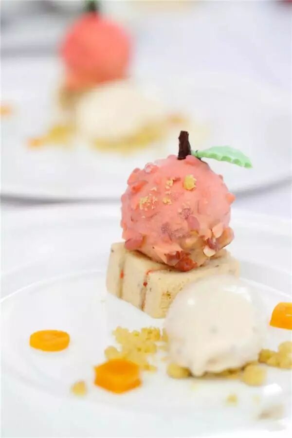 第4道菜:30份甜品,最少包含2个主体,主体的口感及温度应有对比,需使用水果制作。