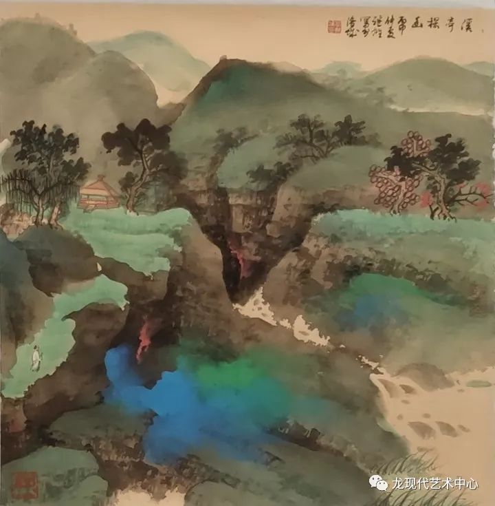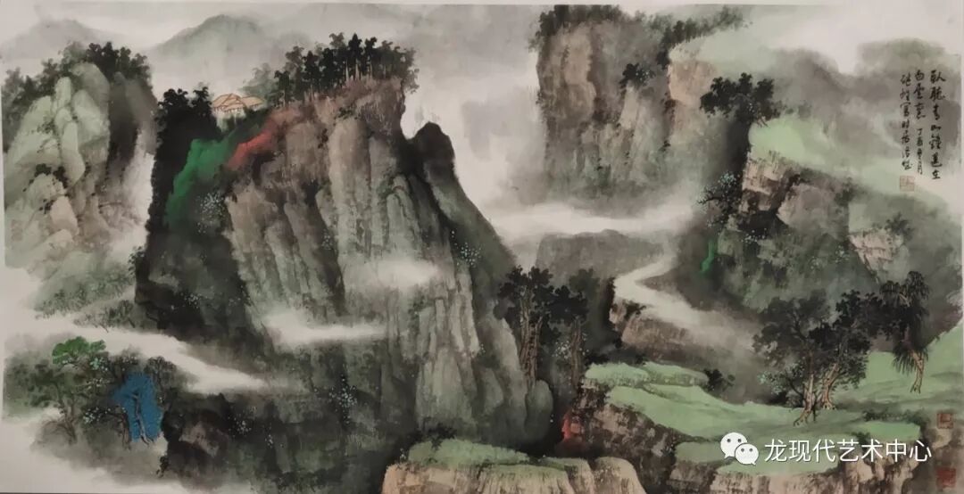 他的绘画创作也极为注重色彩变化,这与他早期的西画经历不无关系,他的青山绿水,以墨为底,老辣而细腻的勾勒与皴擦体现出深厚的传统美学修养。在传统中国画技法的基础上,用色大胆鲜明。泼彩果断率性,色彩关系强烈而和谐,一以贯之地突破传统桎梏,创造出属于自己与这个时代的新山水样式。