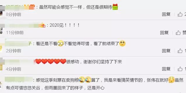 网友表示:虽然可能会感觉不一样,但还是很期待;看还是不看,不看觉得可惜,看了就结束了;很感动,谢谢你们坚持了下来。