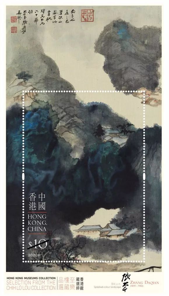 「至乐楼藏中国书画」是香港艺术馆收藏的一批重要古今书画捐赠,以明、清两朝各流派作品为主,反映不同时代和地区的艺术特色,在文物界和艺术界备受推崇。新一辑「香港馆藏选粹」系列,展示五幅至乐楼藏品,包括石涛《写黄研旅诗意册》、陆治《采芝图》、陈字《山水人物杂册》、唐寅《桃花菴》及张大千《泼彩山水》。20元的邮票小型张以特别邮票纸张印製,别具特色,不容错过。