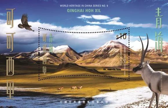 中国世界遗产系列第九号邮票小型张以青海可可西里为主题。青海可可西里位于青藏高原的东北部,2017年被列入世界自然遗产名录,独特的地理和气候环境孕育出其独有的自然生态和丰富的生物多样性。这款邮票小型张展示可可西里的壮丽景观,以及国家一级保护野生动物,如藏羚羊、野氂牛、藏野驴和金鵰。邮票小型张嵌有首次推出的「阔银幕」形状邮票,以突出主题。