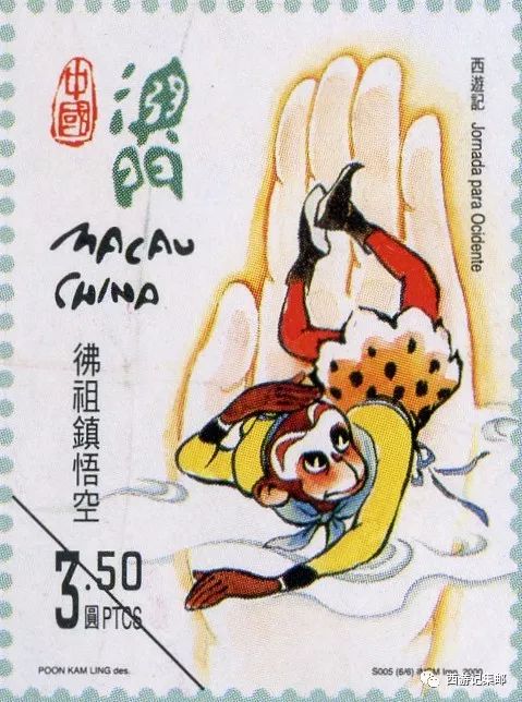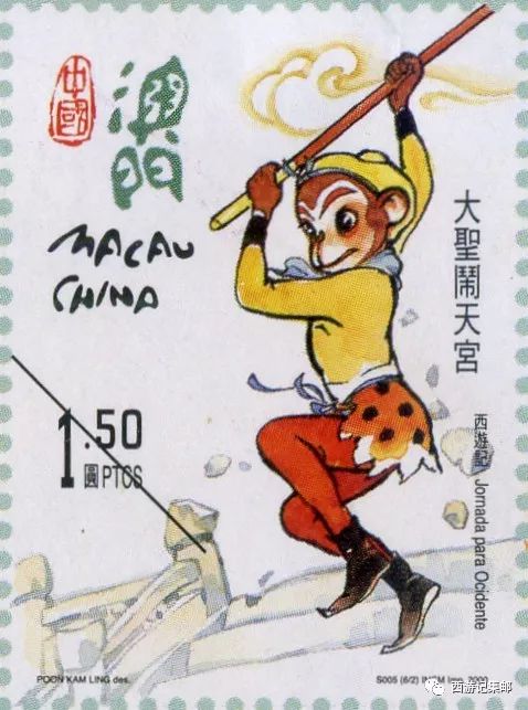 二、面值1.50澳门元、3.50澳门元邮票及小型张上的大圣形象与原著有出入,其腰间的虎皮裙,是在第十四回“心猿归正 六贼无踪”中才出现的;