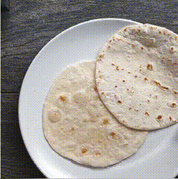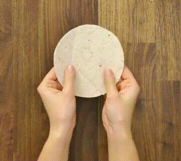 加热完成后,面饼就变成卷状了,按照上面的方法做好馅料放在里面,一款快手的墨西哥鸡肉卷就完成了~