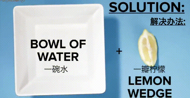 在容器中放入水和柠檬汁,将用过的抹布或海绵放入容器中,在微波炉中加热两分钟。