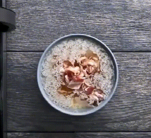 把水煮过的鸡肉切成块,加入青椒等你喜欢的蔬菜,再放入一勺塔克粉,如果家里没有塔克粉,也可以替换成其他你喜欢的调味料,搅拌均匀后,放入微波炉中加热一分钟。