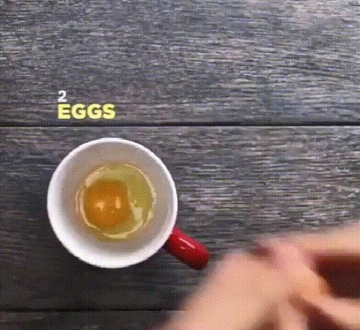 再找一个容器打入两个鸡蛋,放入适量的盐,搅拌均匀,在微波炉中高火加热一分钟。