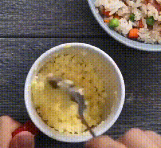 一份不用电饭煲和炒锅的快手炒饭就完成了~