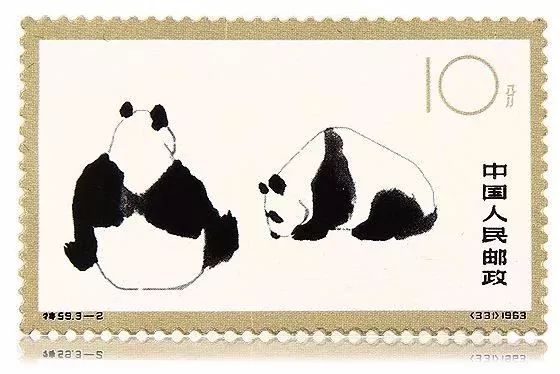 1963年——就在国务院将大熊猫列为应该受到保护的珍贵稀有动物的第二年——国家邮政局发行了一套大熊猫主题邮票,票面上出现的是知名画家吴作人的水墨画作品,一只栩栩如生的大熊猫捧着竹子津津有味地吃着。