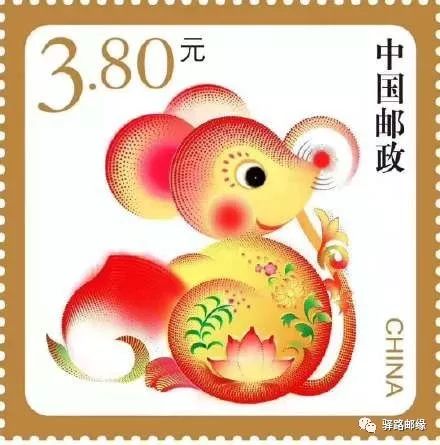 挂号型明信片邮资图将一只可爱俏皮的小老鼠和民间寓意美好的牡丹、荷花、梅花、寿桃等元素巧妙结合,画面丰满灵动,表达出人寿年丰的节日祝福。