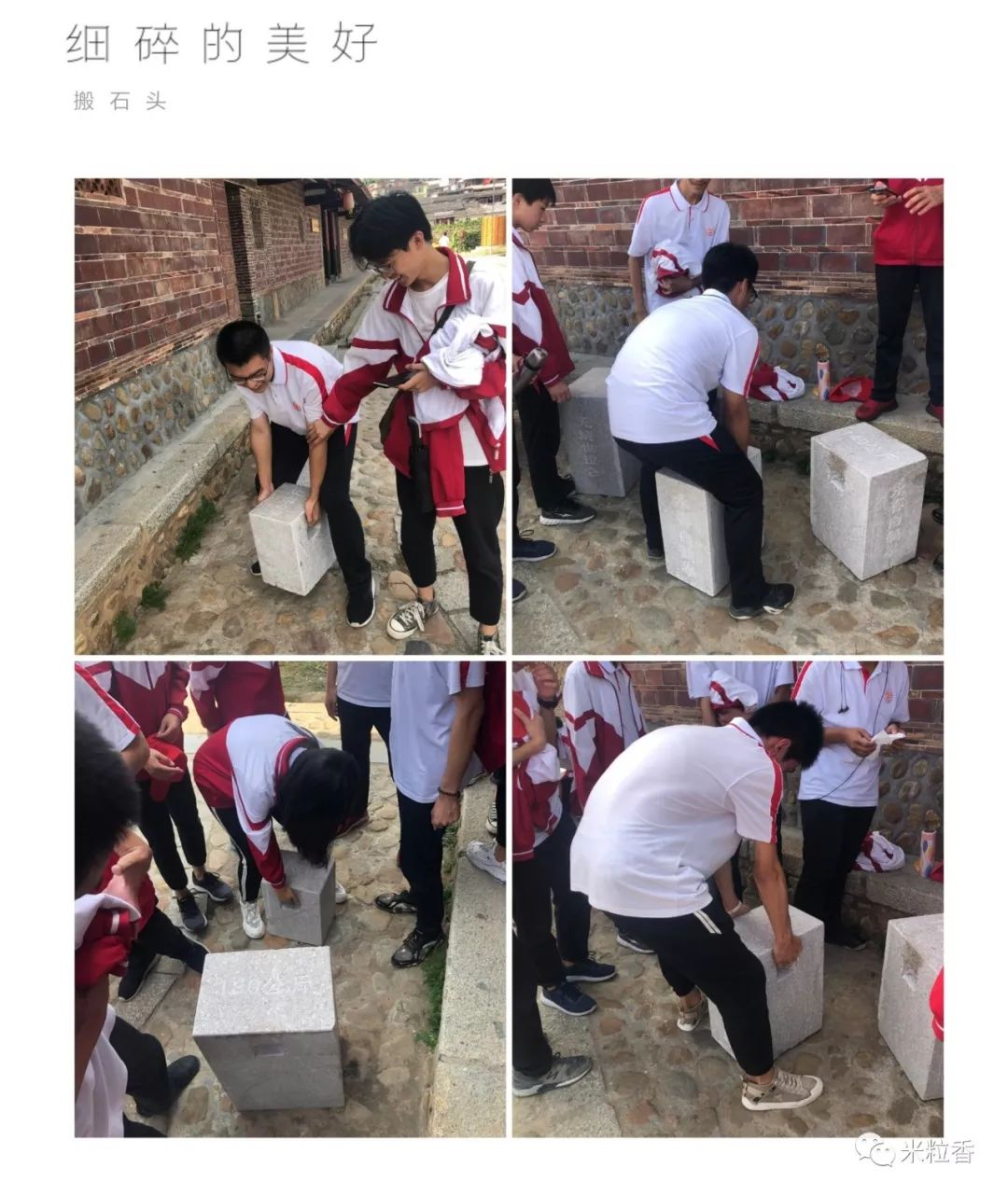 看,高三十班的同学们凭借着自己的力量搬运着花石,有趣生动。我们应该像这石头一般坚毅,对理想坚定不移,永不言弃,但也不能小看自己的力量,即使自己一人的力量有限,但只要大家团结起来,没有什么困难是不能被克服的!