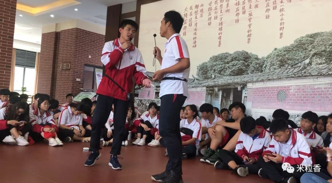 在余光中文学馆里,我班学子带来了爱国歌曲串烧:《歌唱祖国+我爱你中国》,在两位同学优美而深情的歌声下为我们呈现出了浓烈的爱国情怀。看,这正是祖国的花朵,当代的青年,他们正坚定不移的走爱国主义道路,满怀爱国心,坚定自己信念念茁壮成长。