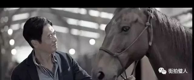 发哥身穿骑师服装,帅气又潇洒。与高大健壮的马儿互动着,拍出了电影的感觉。